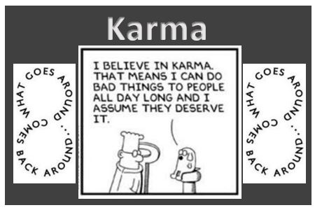 Another benefit of being a karma believer is that when something bad happens to you in your present – you accept it and move on… as an effect of a cause from your past. You are responsible for whatever bad happened, due to some action in your past. Most folks would fret, fume, complain, and try to rationalize to themselves … that it was not their fault. Your teachings and belief in karma, softens the impact of bad actions that happen in your life and minimize their impact – allowing you to accept what has happened.