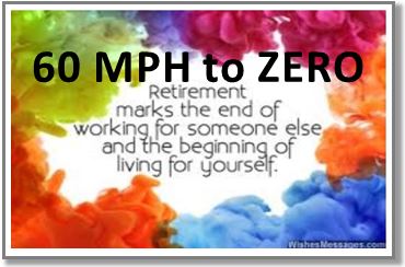 [The math above…. 1 day in someone’s 65-year work existence, is equivalent to 3.6 seconds in 1 day. The day you retire is the equivalent time in seconds, to decelerate your work-life to ZERO]