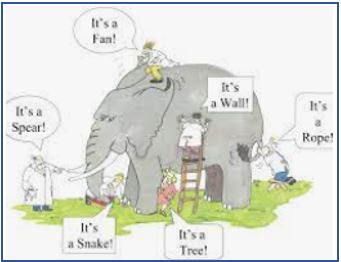 All of us have heard the well-known story of the 6 blind men who independently touched and felt different parts of an elephant and were asked to describe the animal. They came up with very accurate descriptions of their “narrow exposure” to the specific body parts they had touched. All were right, but the bigger picture is very different. Because this example references men who were visually impaired – perhaps it is not as applicable. If I were to replace the ‘6 blind men’ with ‘6 people with blindfolds’, then the bigger picture is very applicable. People with blindfolds will never be able to see the bigger picture unless they remove their blindfolds. My reference to the blindfold here is more metaphorical vs real blindfolds shutting off one’s vision. Most of us live our day-to-day lives with thick blindfolds and miss a lot of the beauty, that life has to offer.