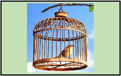 My home is less than 5 cubic feet of space surrounded by gilded bars in the balcony of my master’s home. I am fed daily with water and my favorite seeds, and I get to watch the open sky – but I am still a caged bird ☹